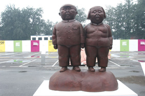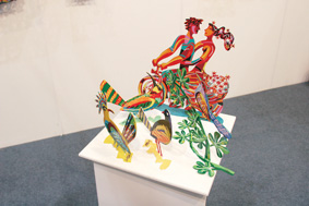 隨著雕塑技法的發(fā)展,雕塑的內(nèi)涵也發(fā)生了變化。從最初個人自我的表現(xiàn)、審美的需要、史實的記錄、文化的傳遞,到今天的娛樂趣味功能,雕塑藝術(shù)走下“神壇”,從架上形式、美術(shù)館和畫廊里走進人們的生活空間,現(xiàn)代城市雕塑從新的角度詮釋雕塑的精神張力。這是近日舉行的“藝術(shù)北京2008”當代藝術(shù)博覽會上的部分雕塑作品。