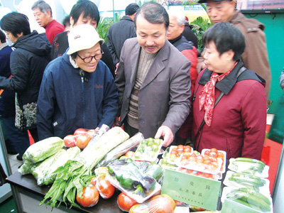 圖為前來參觀的市民正在選購綠色優(yōu)質(zhì)農(nóng)產(chǎn)品。