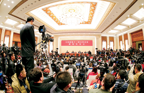 3月2日,全國政協(xié)十二屆五次會議新聞發(fā)布會在人民大會堂一樓新聞發(fā)布廳召開。