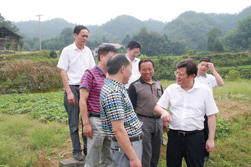 湖南省質(zhì)監(jiān)局局長歐陽彪(右二)在安化指導(dǎo)地理標(biāo)志產(chǎn)品保護工作