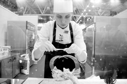 6月7日,為期4天的2017年中國國際技能大賽蘇州賽區(qū)在蘇州國際博覽中心開賽。來自24個國家和地區(qū)的65名中外技能高手在汽車技術、糖藝西點制作、烘焙、時裝技術、管道與制暖、商務軟件解決方案6個項目間展開技能較量。圖為選手在進行糖藝西點制作項目的比賽。