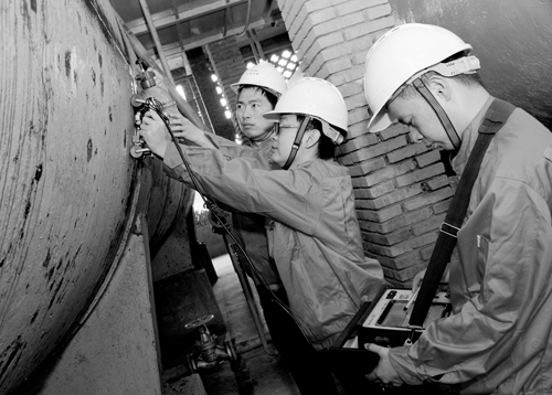 近日,江蘇省特檢院無錫分院對一臺50m3液氨儲罐進(jìn)行了定期檢驗。由于該設(shè)備已投用21年,檢驗組在常規(guī)的壁厚檢測、磁粉檢測、無損檢測項目外,還引入了先進(jìn)、可記錄的TOFD檢測技術(shù)項目,以確?!案啐g”設(shè)備的使用安全。