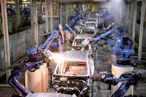 圖為長沙一汽車生產(chǎn)車間的機器手臂正在忙碌著。 楊華峰 攝 《中國質量報》