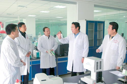 安康市長趙俊民(右二)在富硒中心調(diào)研聽取質(zhì)監(jiān)工作情況匯報