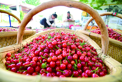 近日,山東省棗莊市山亭區(qū)水泉鎮(zhèn)萬畝櫻桃集中成熟,個(gè)大色艷、酸甜可口的大紅櫻桃成為人們休閑消費(fèi)的搶手貨,呈現(xiàn)出產(chǎn)銷兩旺的良好態(tài)勢。圖為石盆村農(nóng)民在分裝櫻桃。 劉明祥 攝