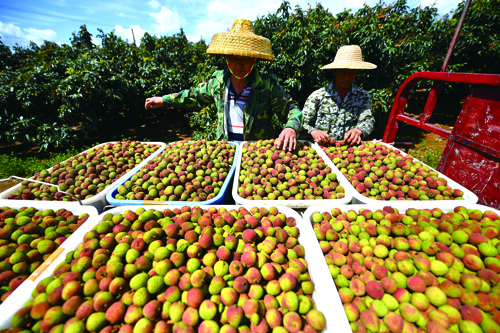 近日,海南北部地區(qū)的“妃子笑”荔枝進(jìn)入收獲時節(jié)。據(jù)了解,今年海南荔枝產(chǎn)量和同期收購價都較去年有所提高。圖為5月14日,??谑协偵絽^(qū)三門坡鎮(zhèn)的農(nóng)民把剛采摘的荔枝裝車,準(zhǔn)備運往收購點。 郭 程 攝