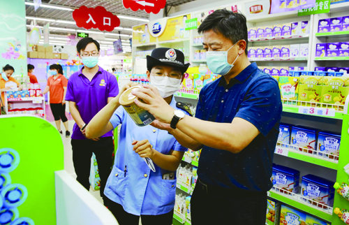 今年的“六一”,北京市的中小學(xué)迎來了返校復(fù)課。連日來,北京市門頭溝區(qū)市場監(jiān)管局開展了校園食堂、特種設(shè)備、校園周邊各類經(jīng)營企業(yè)的監(jiān)督檢查。圖為該局執(zhí)法人員正在商家進(jìn)行食品安全檢查。