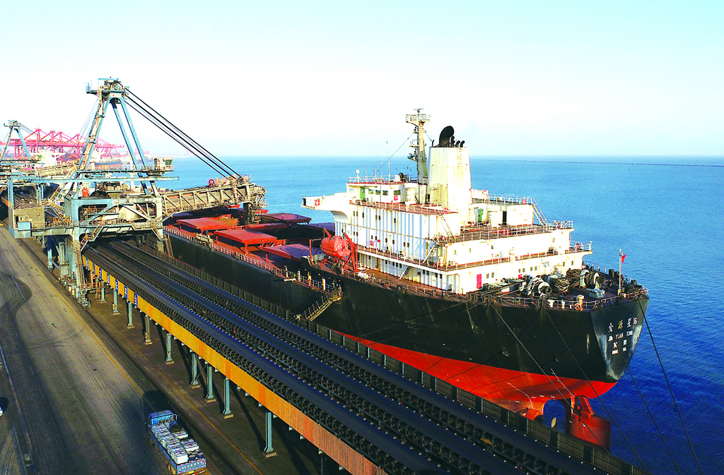 圖為12月19日,一艘輪船靠泊在唐山港京唐港區(qū)煤炭碼頭裝貨。楊世堯 攝