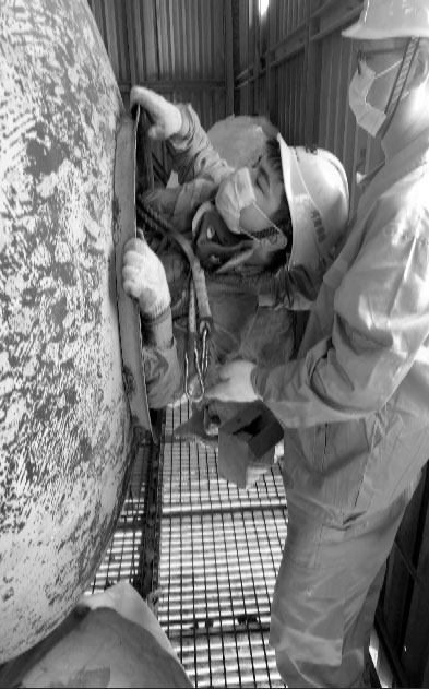 焦作分院檢驗人員進入電站鍋爐鍋筒內(nèi)部檢驗。