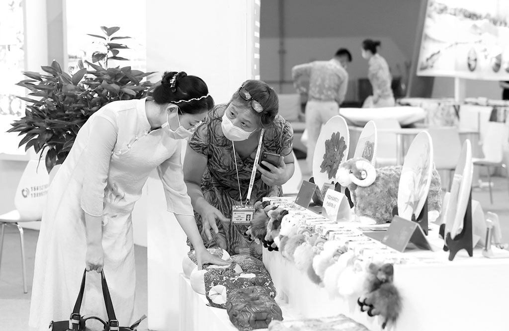 8月21日,第五屆中國-阿拉伯國家博覽會(huì)展館面向公眾開放,寧夏銀川國際會(huì)展中心迎來大批參觀者。圖為市民在康養(yǎng)旅游展區(qū)選購商品。于 晶 攝