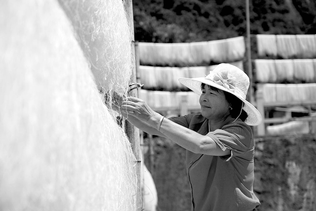浙江省樂清市北部山區(qū)村莊盛產(chǎn)的粉絲別具特色,取白米水磨,利用山區(qū)水煮粉,壓出鮮粉絲,再煮熟,而后在竹簾上晾曬干,特色粉絲通過“定制配送+快遞上門”的方式銷往全國各地。