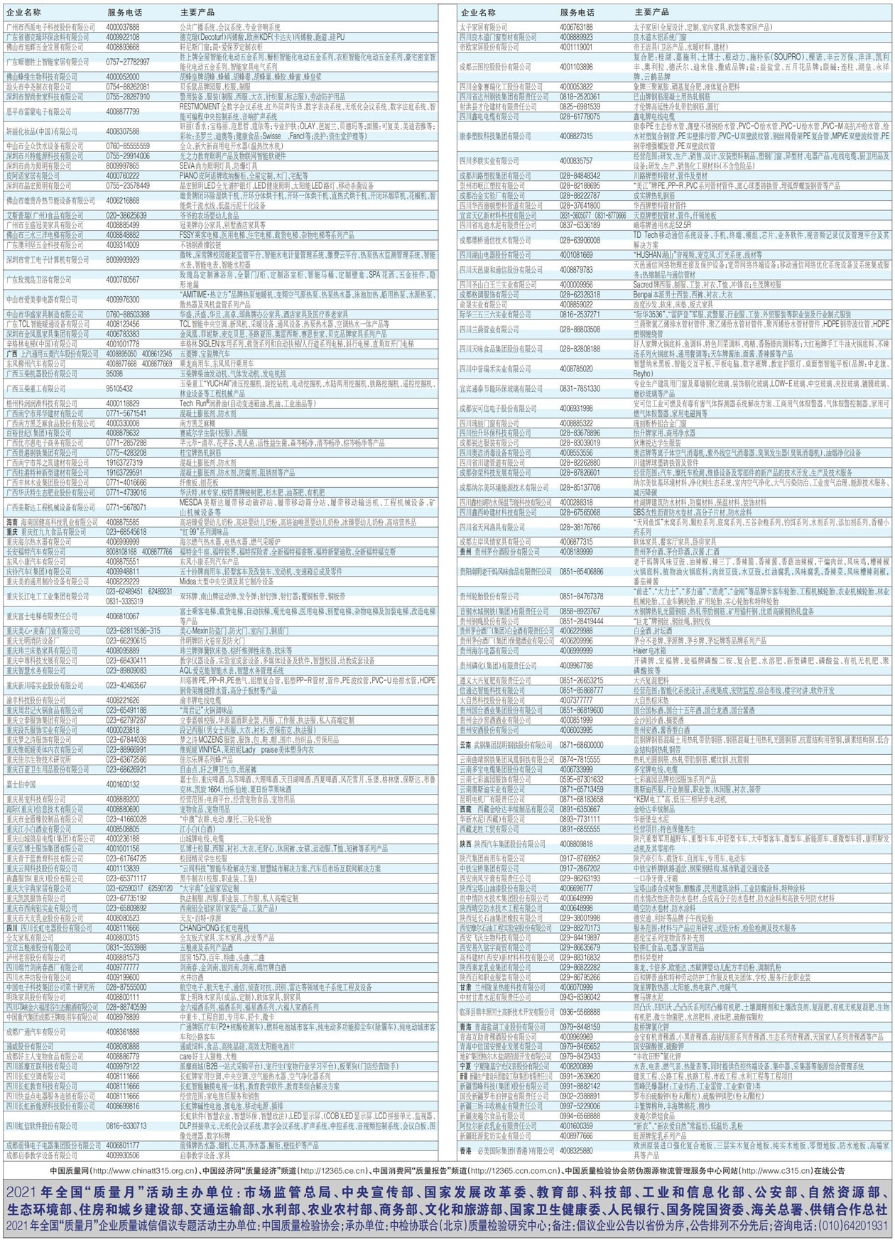 2021年全國“質(zhì)量月”企業(yè)質(zhì)量誠信倡議企業(yè)公告(九)
