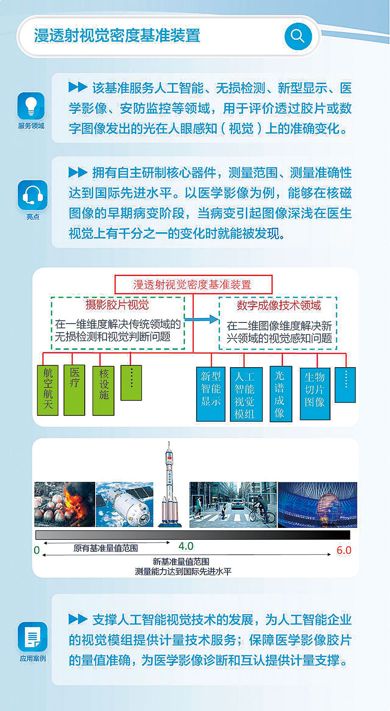 漫透射視覺(jué)密度基準(zhǔn)的建立,解決了以漫透射視覺(jué)密度定值的圖像視覺(jué)技術(shù)相關(guān)領(lǐng)域的量值溯源需求,支撐了包括新型顯示、人工智能視覺(jué)模組、光學(xué)系統(tǒng)制造商、互聯(lián)網(wǎng)智能平臺(tái)儀器質(zhì)控、醫(yī)學(xué)影像和無(wú)損檢測(cè)等相關(guān)行業(yè)的技術(shù)發(fā)展,為推動(dòng)經(jīng)濟(jì)社會(huì)高質(zhì)量發(fā)展提供了堅(jiān)實(shí)基礎(chǔ)。