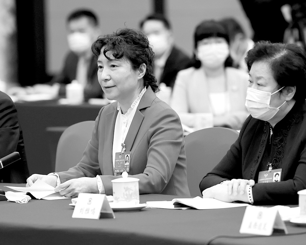 圖為全國(guó)政協(xié)委員王靜就筑牢農(nóng)產(chǎn)品質(zhì)量安全基石發(fā)言。黃敬文 攝