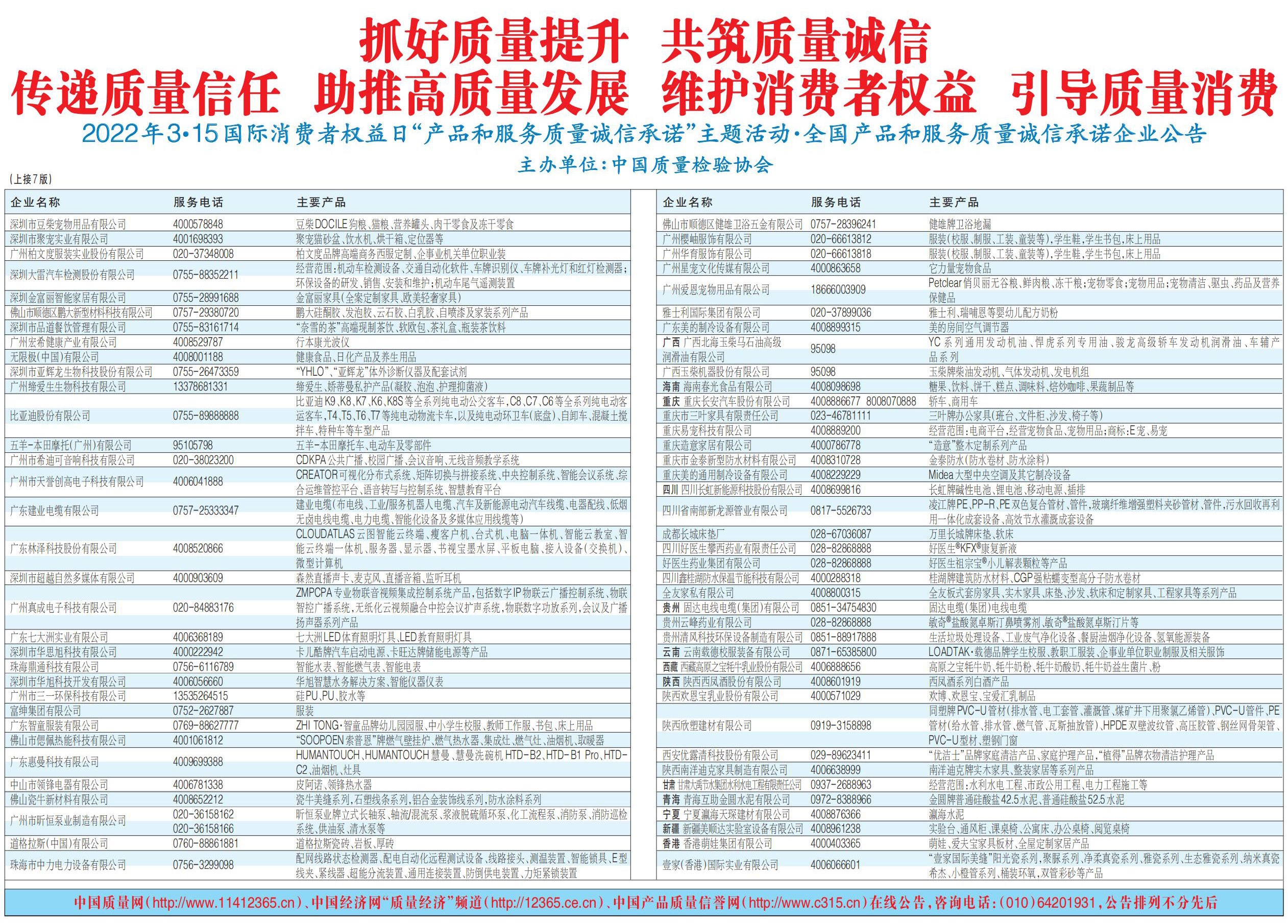2022年3·15國際消費者權(quán)益日“產(chǎn)品和服務(wù)質(zhì)量誠信承諾”主題活動·全國產(chǎn)品和服務(wù)質(zhì)量誠信承諾企業(yè)公告