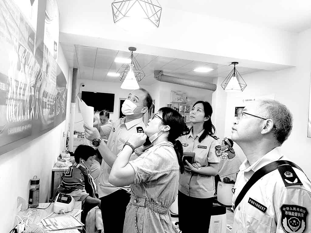 圖為該局執(zhí)法人員在某理療店進行檢查。崔 勇 張幼勇 文/攝