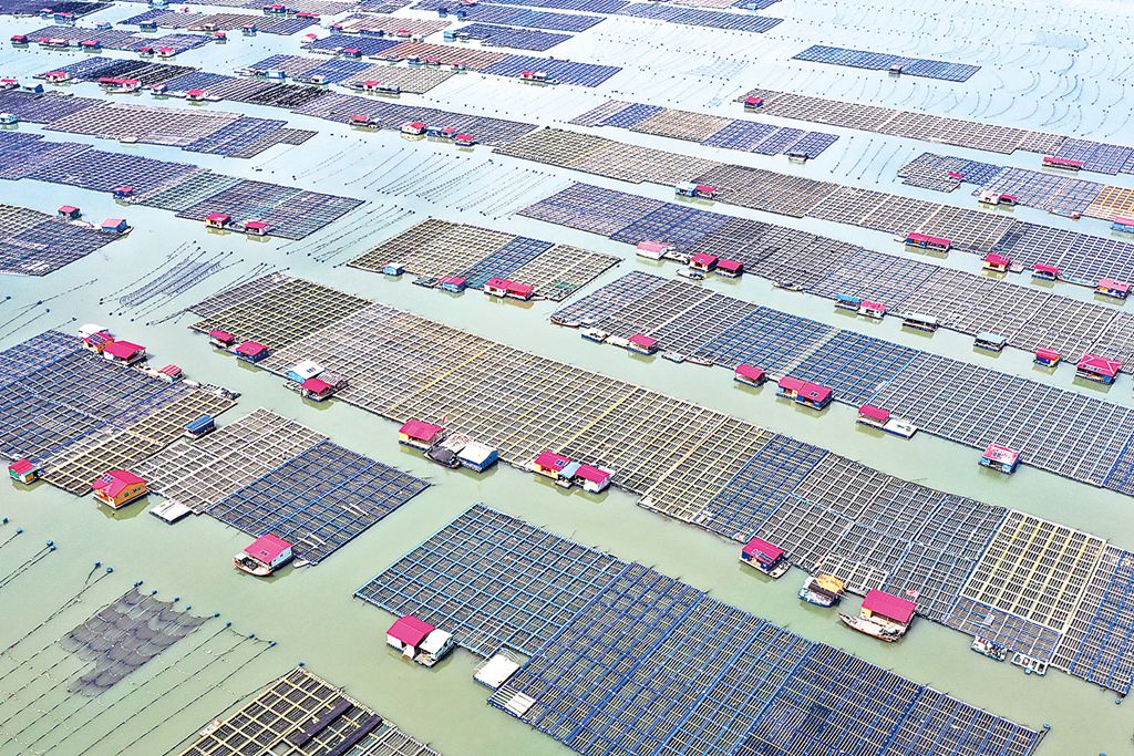 近日,福建省寧德市霞浦縣溪南鎮(zhèn)海域的海洋牧場(chǎng),一派海上耕作繁忙景象。 王旺旺 攝