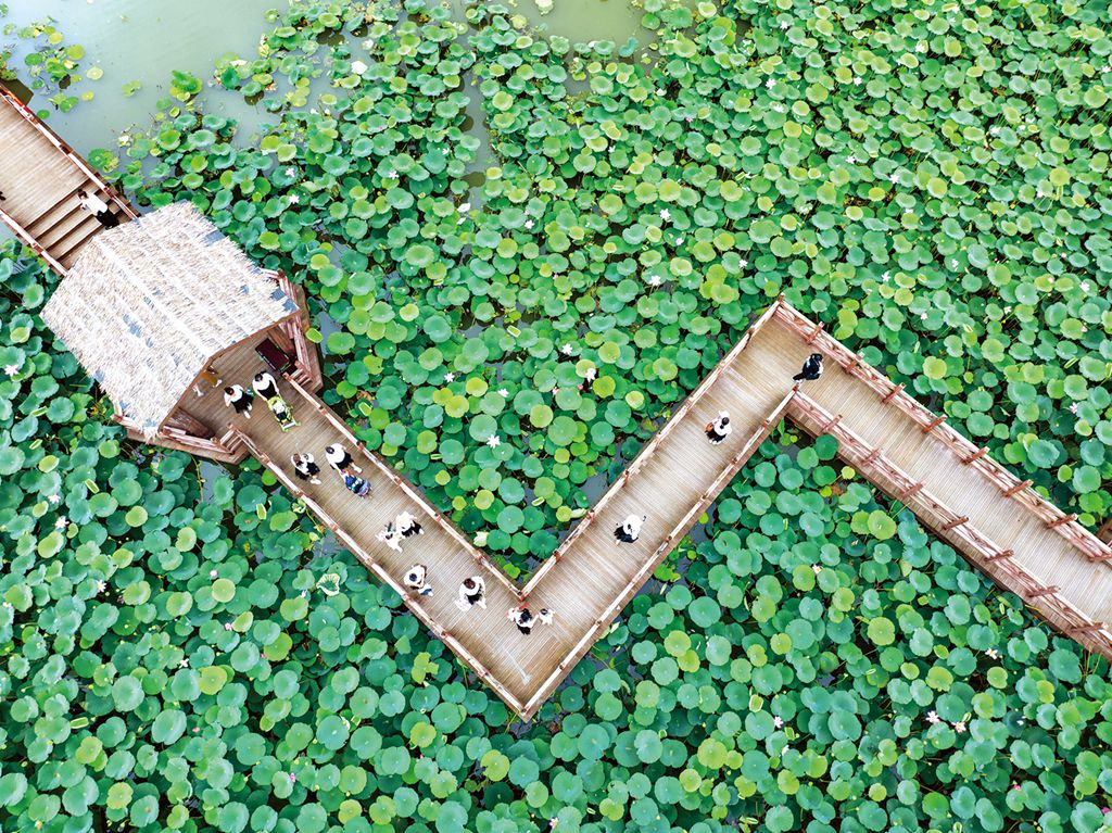 圖為近日游人在江蘇省興化市國家濕地公園享受美好時(shí)光。