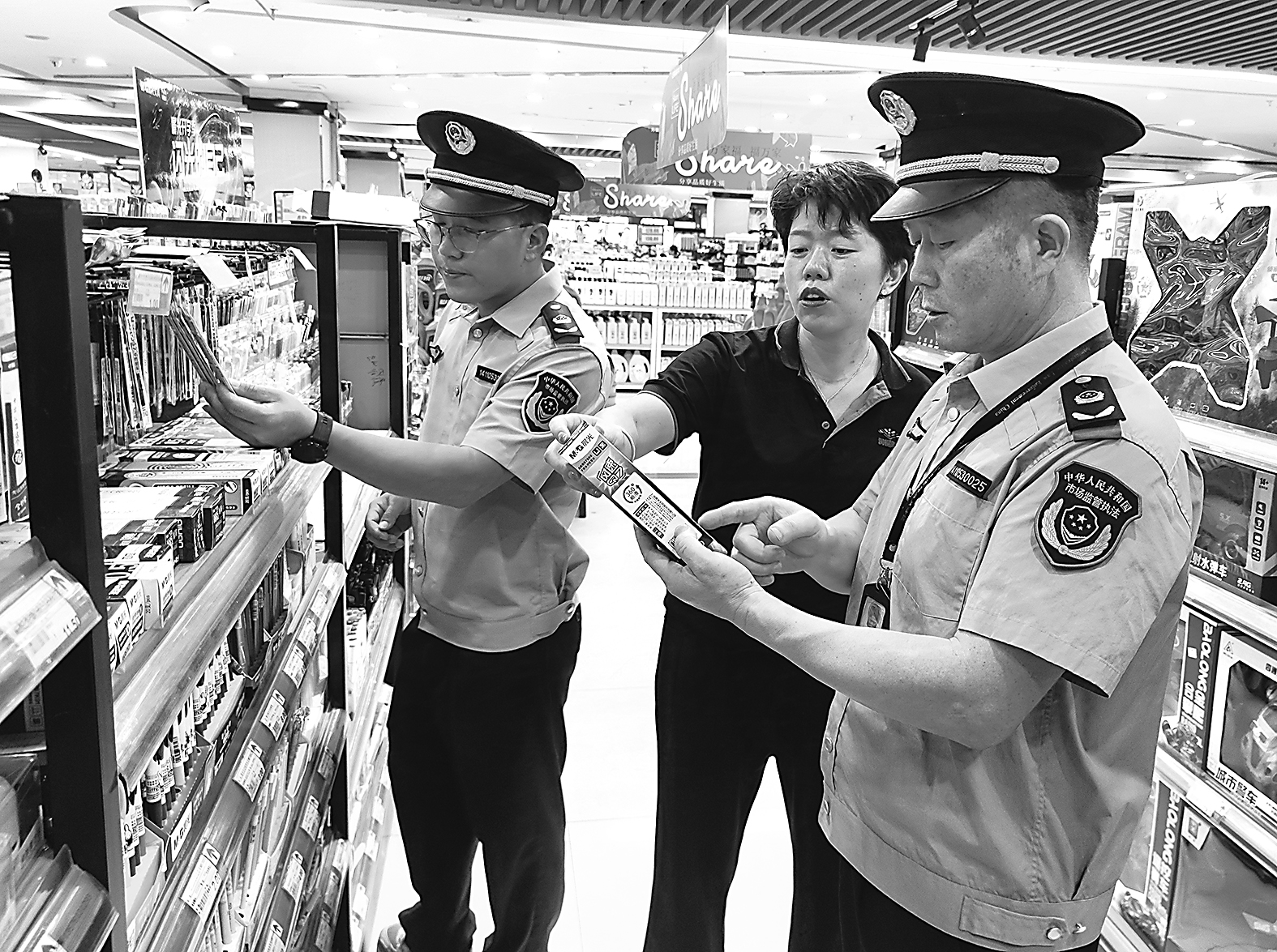 圖為執(zhí)法人員日前在某超市檢查。