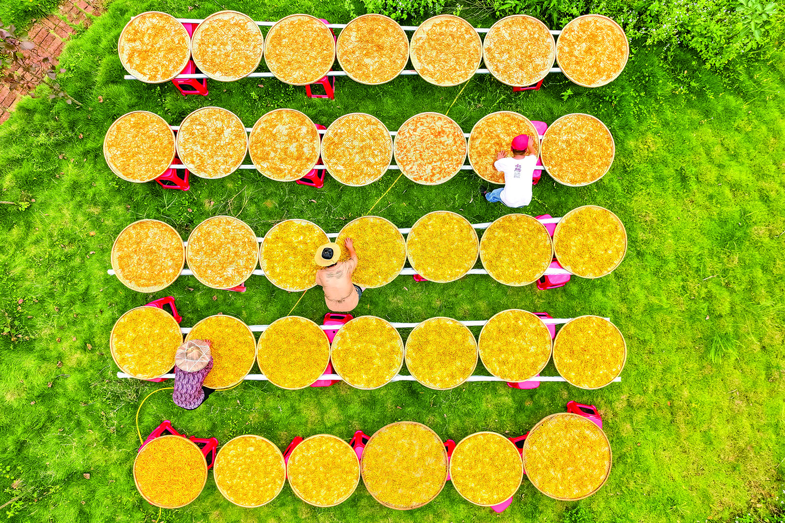 近年來,福建省南安市向陽鄉(xiāng)大力發(fā)展黃花菜、鐵皮石斛等中草藥種植產(chǎn)業(yè),助力村民在家門口就業(yè),共享鄉(xiāng)村振興成果。圖為近日向陽鄉(xiāng)坑頭村村民在晾曬黃花菜。