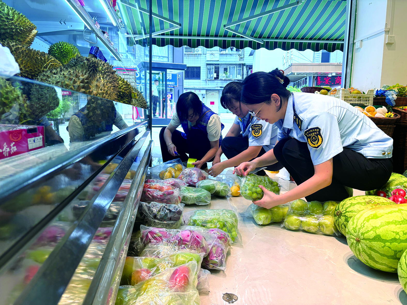 圖為日前執(zhí)法人員在一家超市抽取樣品。