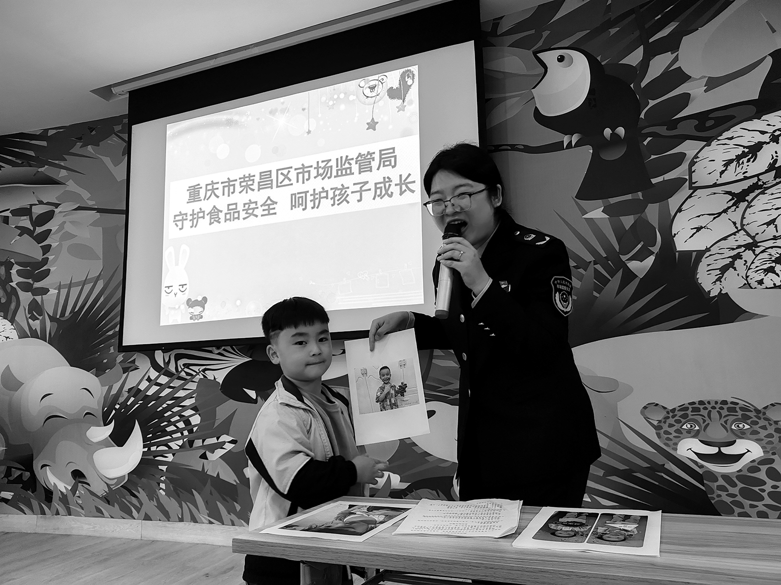 近日,重慶市榮昌區(qū)食品藥品安全委員會辦公室聯(lián)合轄區(qū)單位開展兒童食品安全宣講活動。圖為該區(qū)昌元市場監(jiān)管所工作人員在一家幼兒園給小朋友們講解食品安全知識。