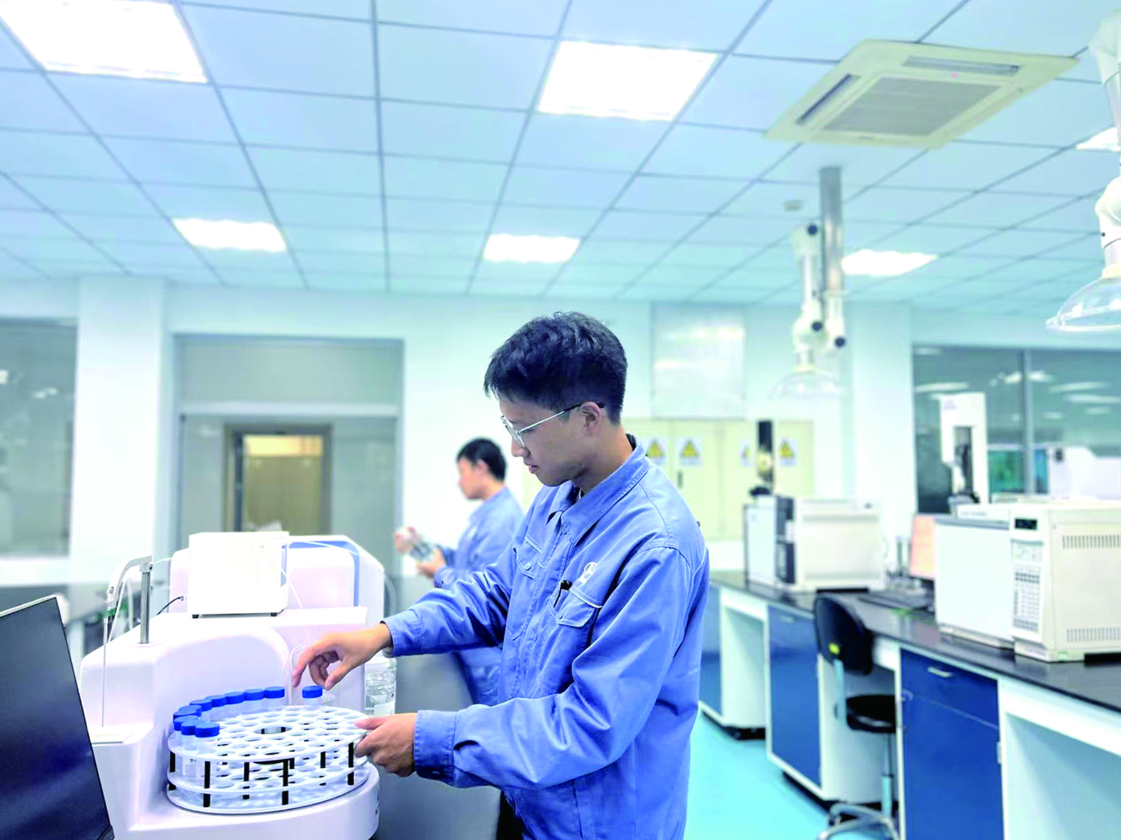 近年來(lái),中國(guó)石化九江分公司大力推進(jìn)節(jié)能降碳減排,積極探索數(shù)字化、網(wǎng)絡(luò)化、智能化管理,加快推動(dòng)綠色低碳轉(zhuǎn)型。圖為技術(shù)人員對(duì)煉油外排污水做水質(zhì)分析。