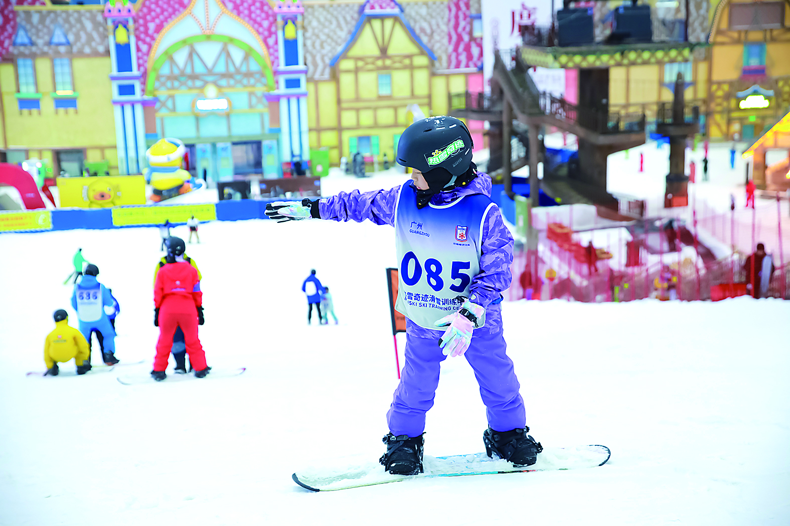 南方室內(nèi)滑雪“圈粉”眾多游客。廣東省廣州熱雪奇跡室內(nèi)滑雪場(chǎng)設(shè)有5條不同坡度的專業(yè)滑雪道,最大落差達(dá)66米,滿足從初學(xué)者到專業(yè)滑雪者的多元化需求。