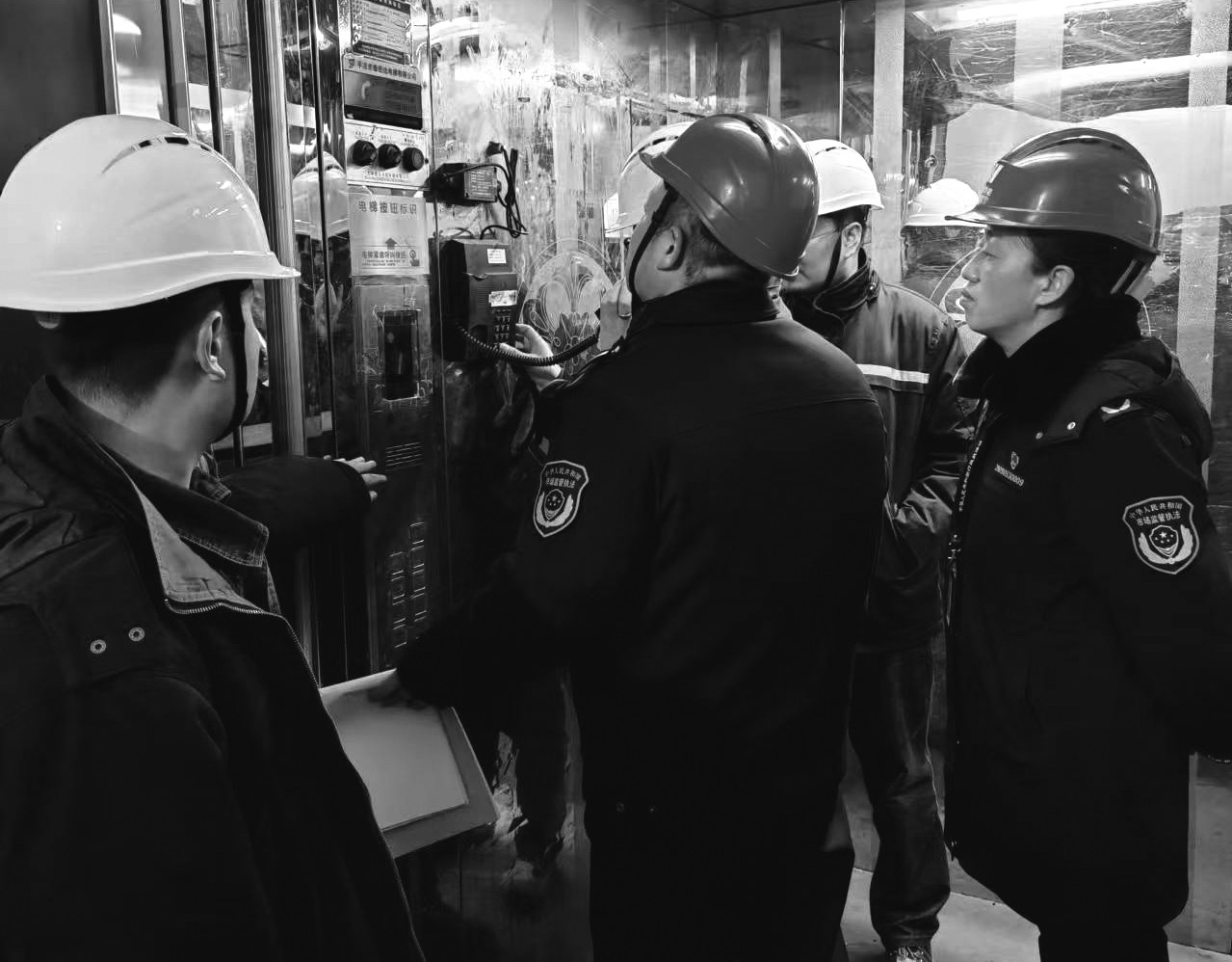 圖為執(zhí)法人員在一家企業(yè)檢查特種設(shè)備。