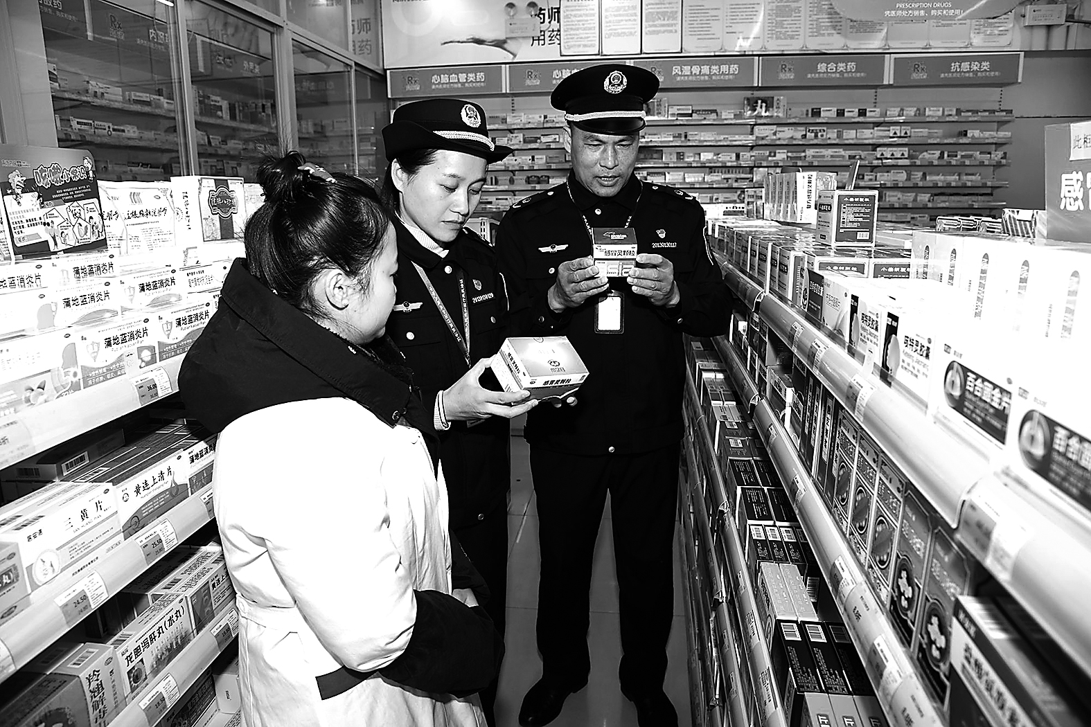 圖為執(zhí)法人員在一家藥店檢查。 魯麗軍 廖勝華 文/攝