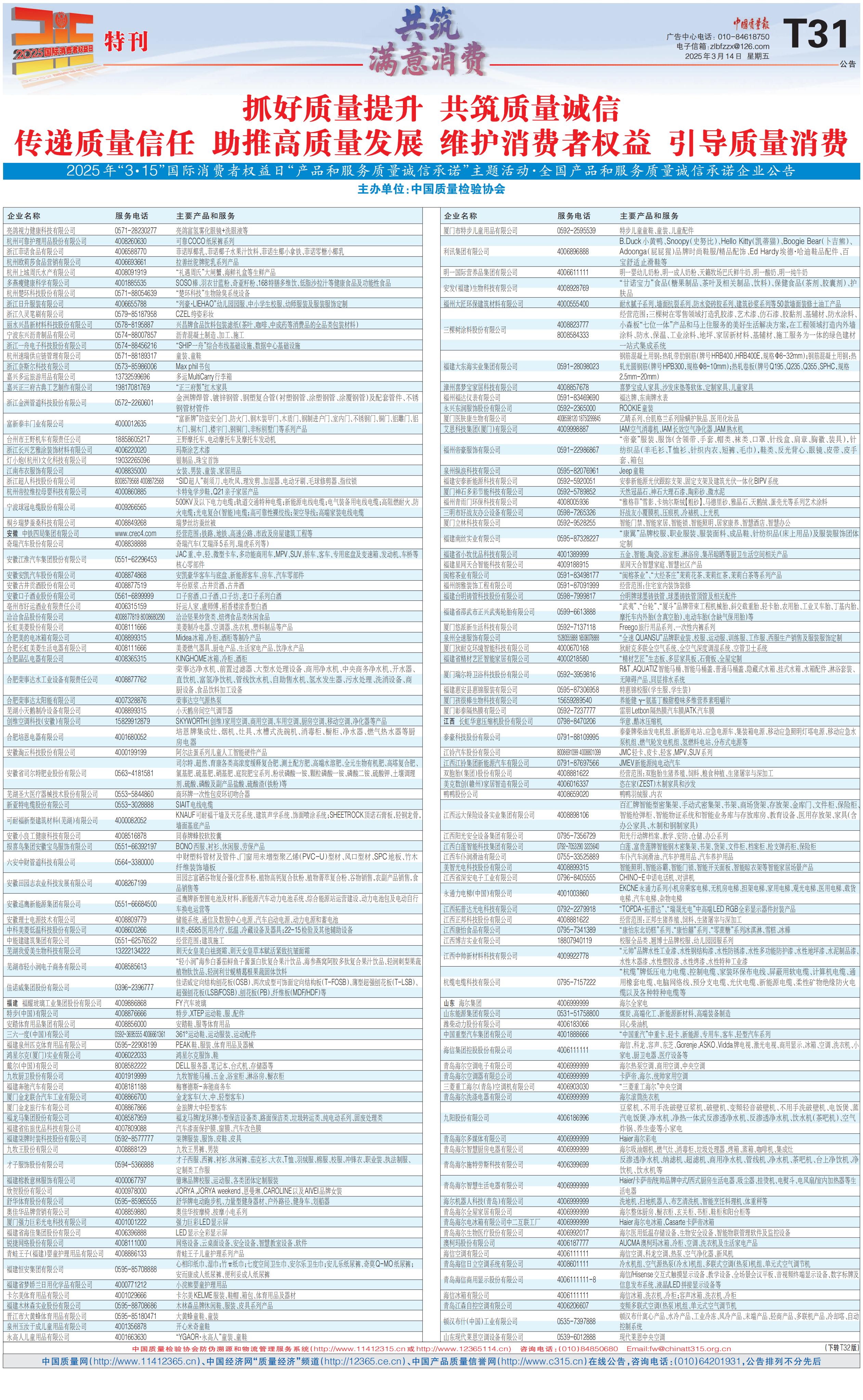 2025年“3·15”國際消費者權(quán)益日“產(chǎn)品和服務(wù)質(zhì)量誠信承諾”主題活動·全國產(chǎn)品和服務(wù)質(zhì)量誠信承諾企業(yè)公告(七)