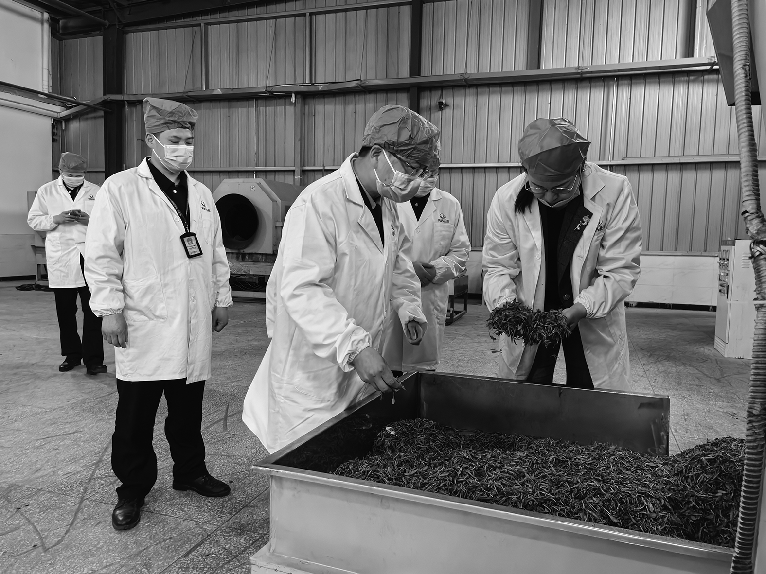 圖為該局相關(guān)負責人進入雞鳴茶業(yè)有限公司生產(chǎn)車間,實地查看茶葉加工流程、質(zhì)量控制及安全生產(chǎn)情況。