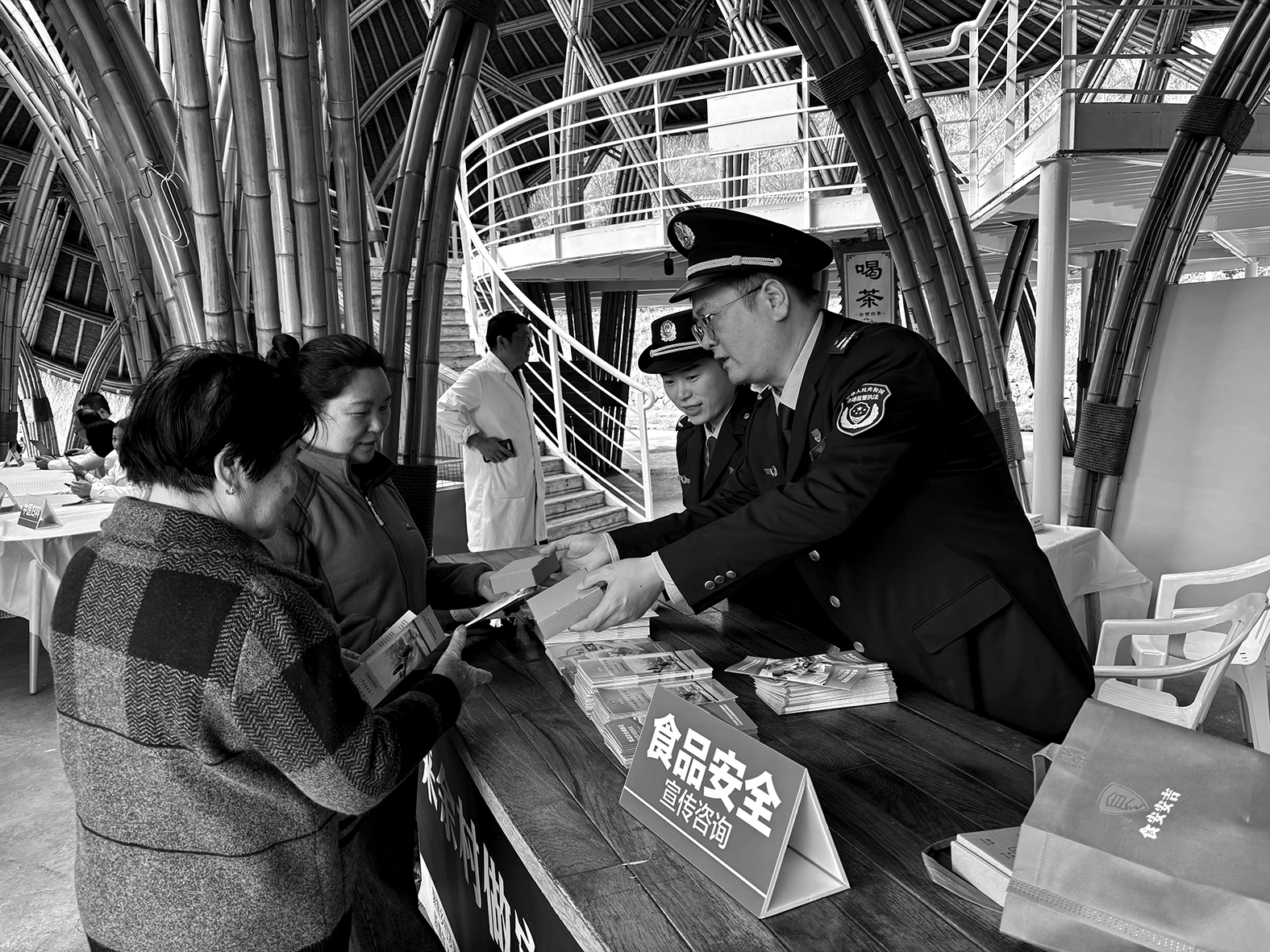 圖為該局工作人員向消費者發(fā)放食品安全相關(guān)資料。