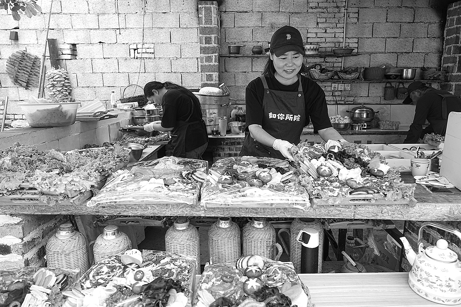 圖為4月20日,在張夏街道岳莊村,休閑庭院主理人徐田在準(zhǔn)備餐食。