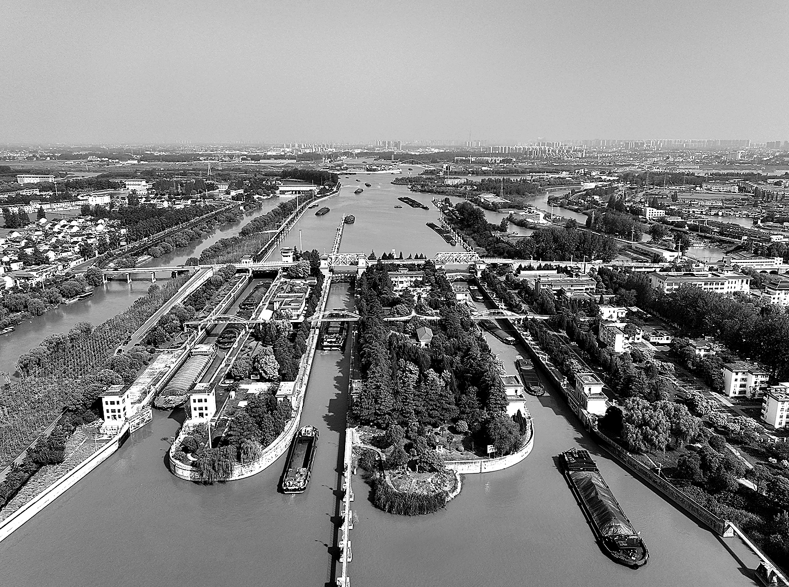 圖為近日拍攝的淮安船閘全景。