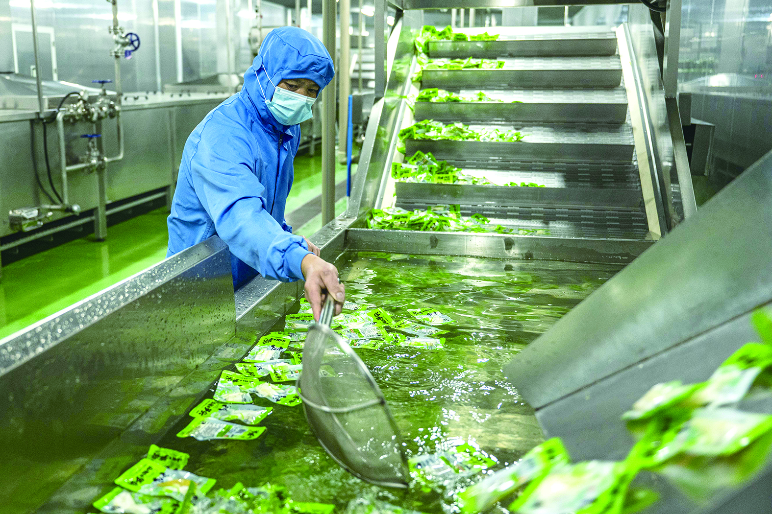 圖為該產(chǎn)業(yè)園竹筍生產(chǎn)車間的工人正在檢查產(chǎn)品質(zhì)量。