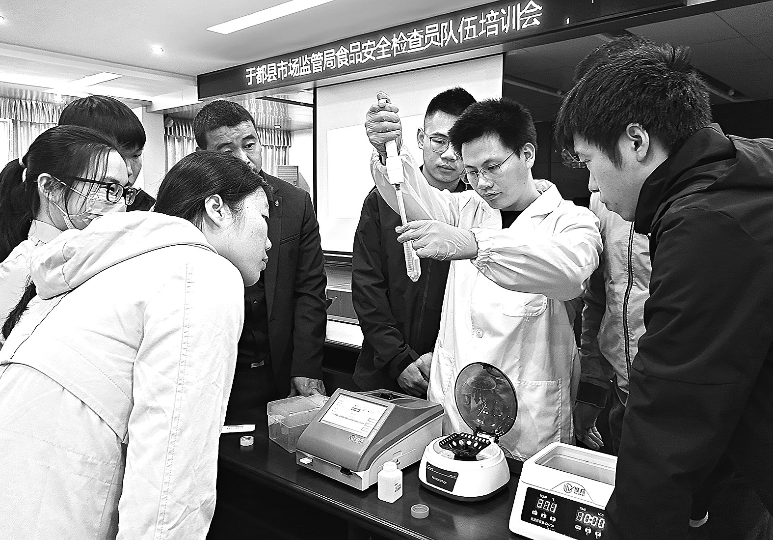 圖為培訓(xùn)中專家在演示快速檢測技術(shù)的應(yīng)用場景與操作要點。