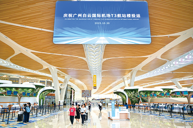 10月30日,廣州白云國際機(jī)場第三座航站樓(T3航站樓)、第五跑道正式投入運(yùn)行,標(biāo)志著該機(jī)場進(jìn)入“5條跑道+3座航站樓”運(yùn)行時(shí)代,成為中國民航首個(gè)5條商用跑道同時(shí)運(yùn)行的機(jī)場。T3航站樓建筑造型以“花”為設(shè)計(jì)主題,融入“云山珠水”“花城”的廣州特點(diǎn)。
