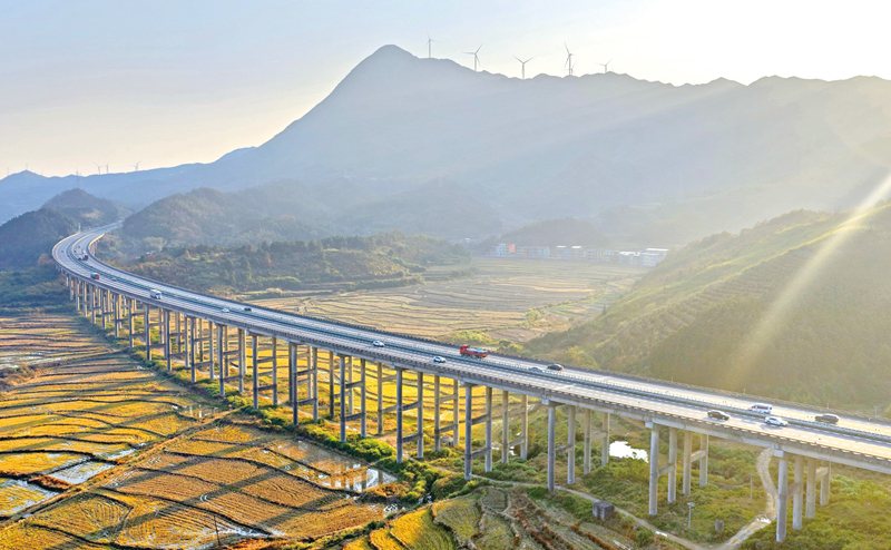 圖為近日在常寧市廟前鎮(zhèn)泉井村,穿境而過的許廣高速與群山、田園相映成景,美不勝收。