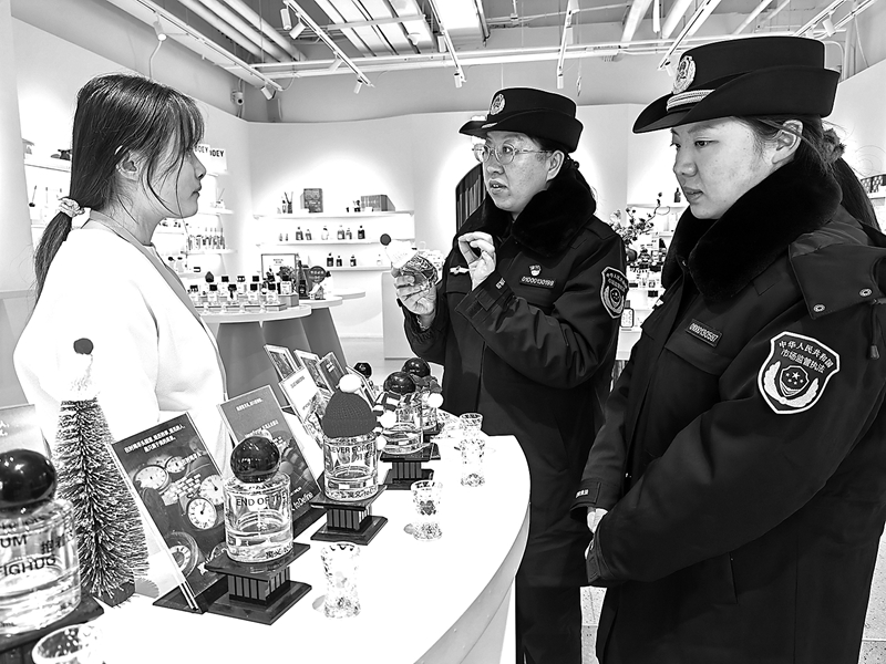 為切實(shí)保障元旦期間市場(chǎng)秩序、營(yíng)造安全放心消費(fèi)環(huán)境,北京市東城區(qū)市場(chǎng)監(jiān)管局以嚴(yán)格執(zhí)法、精細(xì)服務(wù)筑牢市場(chǎng)安全防線。圖為近日該局工作人員正在一線開展執(zhí)法檢查。 全 茜 本報(bào)記者 徐建華 文/攝