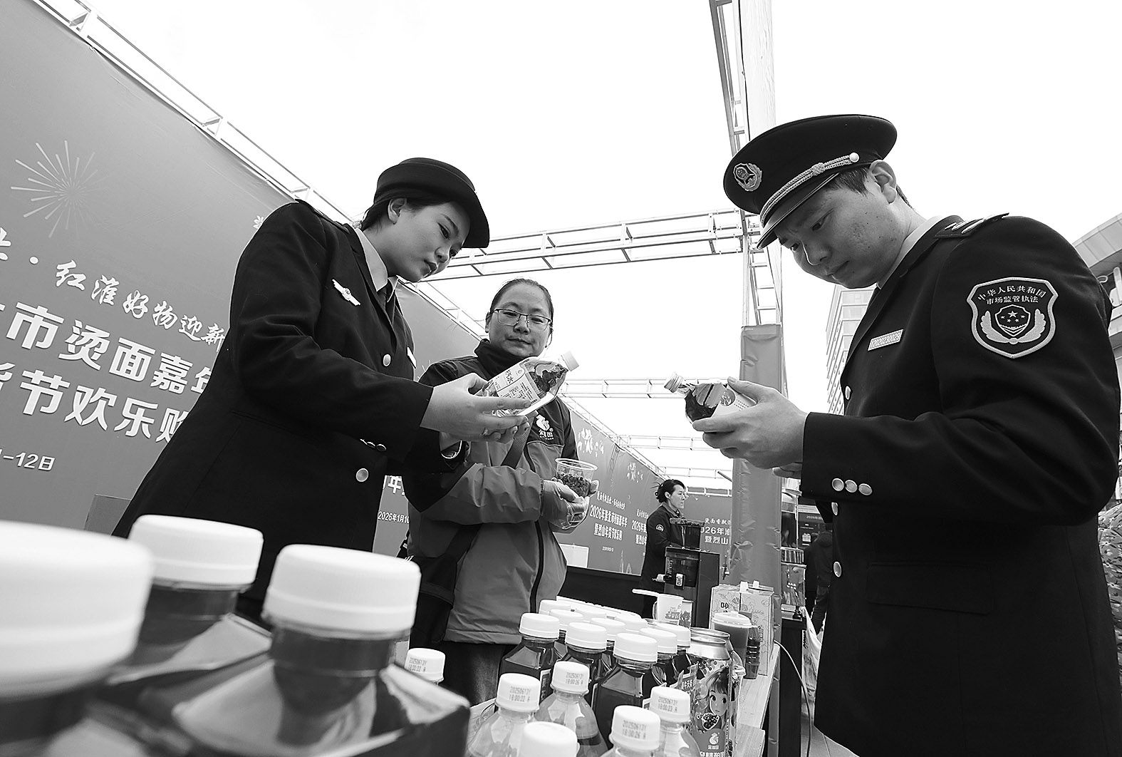 圖為日前有關(guān)執(zhí)法人員在烈山年貨節(jié)上巡查。