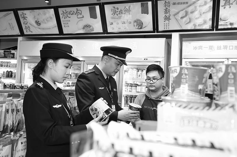 圖為該局執(zhí)法人員在南寧地鐵1號線萬象城站商業(yè)街檢查。 何正君 攝