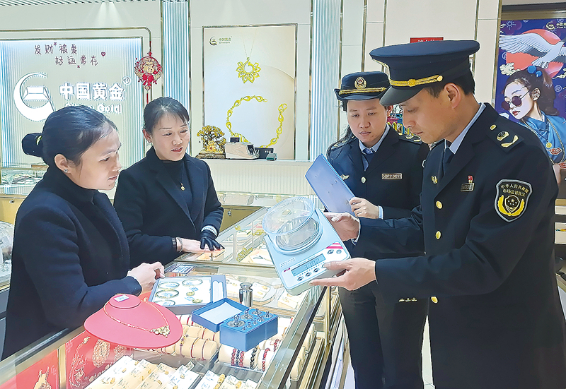 為確保黃金銷售計量準確、保障消費者合法權(quán)益,近日,江西省于都縣市場監(jiān)管局對黃金銷售市場進行專項監(jiān)督檢查,并向經(jīng)營者宣傳計量相關法律法規(guī)及電子天平使用常識,督促經(jīng)營者規(guī)范使用計量器具,誠信守法經(jīng)營。