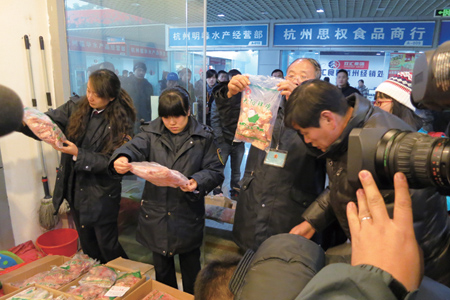 前不久,浙江杭州市質(zhì)監(jiān)局結(jié)合杭州實(shí)際制定了全市打假保節(jié)日專項(xiàng)行動方案,組織全系統(tǒng)開展系列專項(xiàng)執(zhí)法行動。日前,執(zhí)法人員聯(lián)合浙江省質(zhì)監(jiān)局、城區(qū)分局執(zhí)法人員以及多家新聞媒體開展了聯(lián)合執(zhí)法檢查,共出動執(zhí)法人員112人次,打響了2013年春節(jié)前打假保節(jié)日專項(xiàng)行動的第一槍。