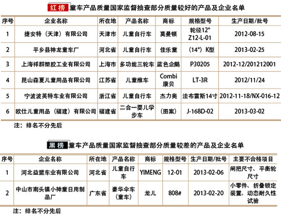 近期,質(zhì)檢總局組織對(duì)童車產(chǎn)品質(zhì)量進(jìn)行了國家監(jiān)督抽查。2013年第二季度,共抽查了天津、河北、上海、江蘇、浙江、安徽、福建、山東、河南、湖北、廣東等11個(gè)省、直轄市120家企業(yè)生產(chǎn)的120批次童車產(chǎn)品。