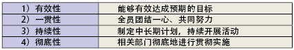 1)有效性。通過實(shí)際開展的改善活動(dòng),取得了杰出的成績(jī),為質(zhì)量管理的發(fā)展做出了貢獻(xiàn)。2)再現(xiàn)性。不僅是作為評(píng)價(jià)對(duì)象的新產(chǎn)品/服務(wù)、新技術(shù)取得了杰出成績(jī),還要在確立了新的管理體系方法后,其他領(lǐng)域也能夠取得同樣的成效。3)創(chuàng)新性。管理領(lǐng)域具有創(chuàng)新型發(fā)展。
