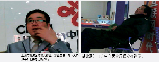 在上海市,中國質(zhì)量萬里行明察暗訪組發(fā)現(xiàn),“中國聯(lián)通”上海分公司下屬多家營業(yè)廳,在針對上海以外城市的消費(fèi)者開通手機(jī)卡辦理業(yè)務(wù)時(shí),帶有不公平的附加條件。