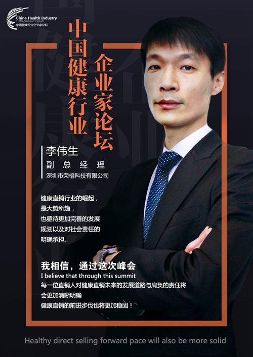 中國質(zhì)量新聞網(wǎng)訊(李國強)“健康直銷行業(yè)的崛起,是大勢所趨,也亟待更加完善的發(fā)展規(guī)劃以及對社會責任的明確承擔?!比涨?,深圳市榮格科技有限公司副總經(jīng)理李偉生寄語2018中國健康行業(yè)企業(yè)家論壇暨社會責任峰會,預祝論壇取得圓滿成功。