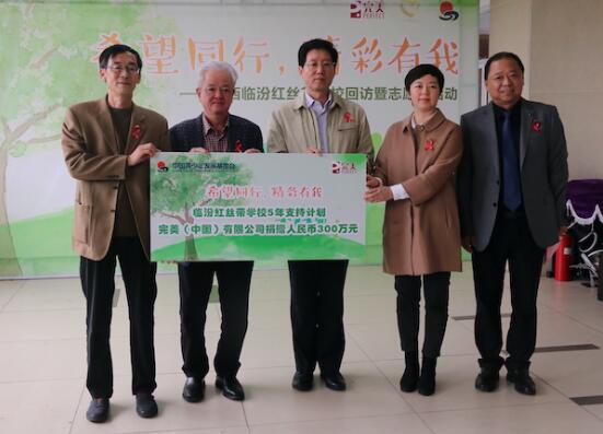 圖為完美(中國)有限公司愛心捐贈300萬元支持臨汾紅絲帶學(xué)校教育事業(yè)