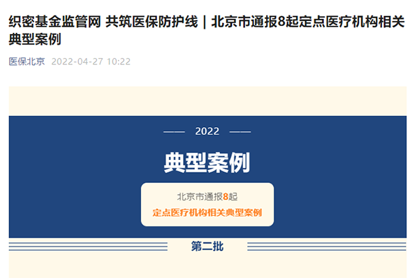 中國網(wǎng)財經(jīng)4月27日訊(記者 杜丁)今日,“醫(yī)保北京”公布“北京市通報8起定點醫(yī)療機(jī)構(gòu)相關(guān)典型案例”。